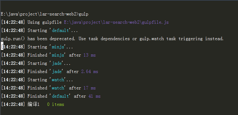 - 安装完项目依赖包,输入命令 1gulp
