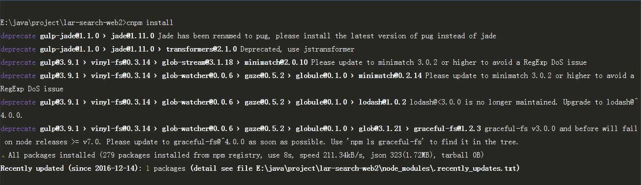 ps: (cnpm install比较快)